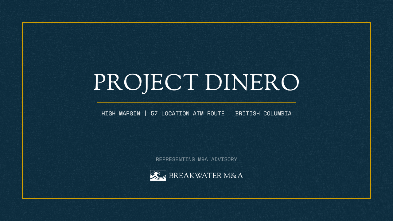 Project Dinero is an independent ATM route operator with 57 active machines across British Columbia. The business generates recurring revenue from surcharge and network fees, delivering stable cash flow with minimal owner involvement. As one of only two independent operators in the region, it benefits from defensible market positioning and long-standing client relationships.