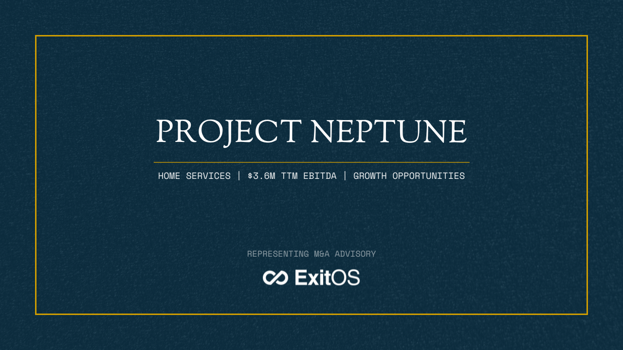 The business has achieved TTM revenue of approximately $15.8 million and Adjusted EBITDA of $3.5 million, supported by a highly scalable subcontractor model and transferable brand certifications. With operations across the Mid-Atlantic and planned expansion into high-growth southern markets, Project Neptune is well positioned for continued growth.